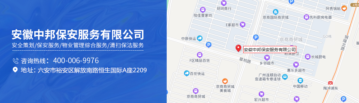 中邦服務簡介 安徽中邦保安服務有限公司總公司成立于2019年。公司 成立以來,始終以“文明值勤、優良服務、客戶至上、安全為先” 為宗旨,以保一方平安為已任,面向社會各界等提供有償保安護 衛、技術防范、保安培訓,是一家專業化保安服務公司。目前, 公司下為200多家客戶單位提供周到安全的保安服務,遍布全省 及周邊地區,現有各類專業人員和保安員2000余名。 中邦服務宗旨 安徽中邦保安服務有限公司是為適...